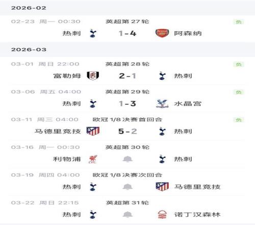 接下來(lái)的一周,熱刺將在七天內(nèi)先后迎戰(zhàn)利物浦、馬競(jìng)(次回合)、諾丁漢森林。以目前這支球隊(duì)的狀態(tài),三連敗并非危言聳聽(tīng)。英超積分榜上,熱刺僅高出降級(jí)區(qū)1分 。想?yún)⒓酉沦惣練W戰(zhàn),只剩下奪得歐冠冠軍這一條路。這句話說(shuō)出來(lái),自己都覺(jué)得像黑色幽默。