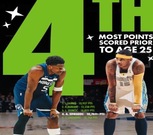 據(jù)統(tǒng)計,愛德華茲的NBA生涯總得分已經(jīng)超過了10768分,正式超越“甜瓜”安東尼,躍升到了“NBA25歲前球員得分榜”的第4名。排在愛德華茲前面的,是詹姆斯的13927分、杜蘭特的12258分和東契奇的10825分。