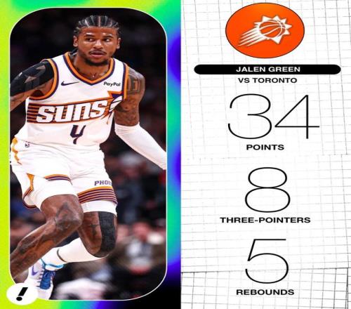 全場出戰(zhàn)34分鐘,投籃23中14,三分9中3,罰球7中5,得到36分3籃板4助攻4搶斷,36分刷新太陽生涯最高,同時正負值達到了+16。
